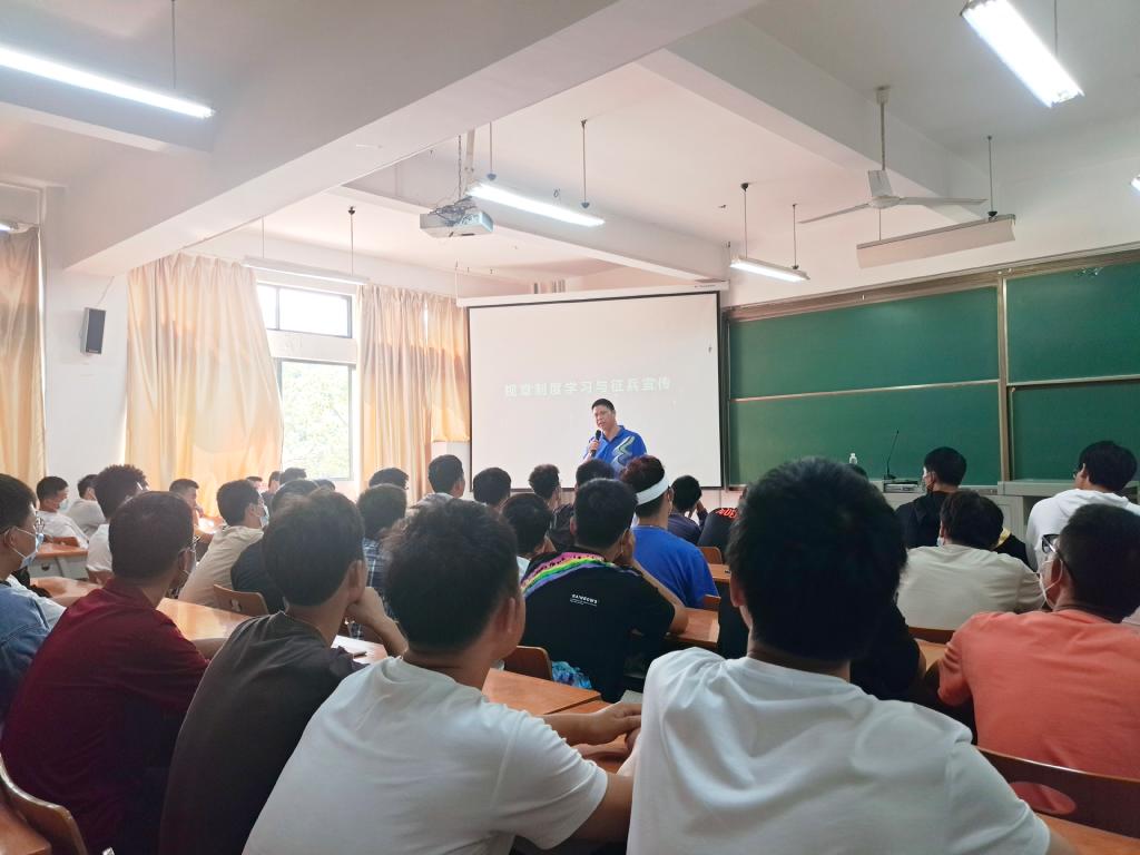 讲座上,刘园美以参军入伍的学长学姐们为例,对应征入伍的条件、流程、老员工参军特别优惠政策等作了介绍,鼓励同学们积极参与应征入伍,在军营中锻炼体魄、淬炼青春。