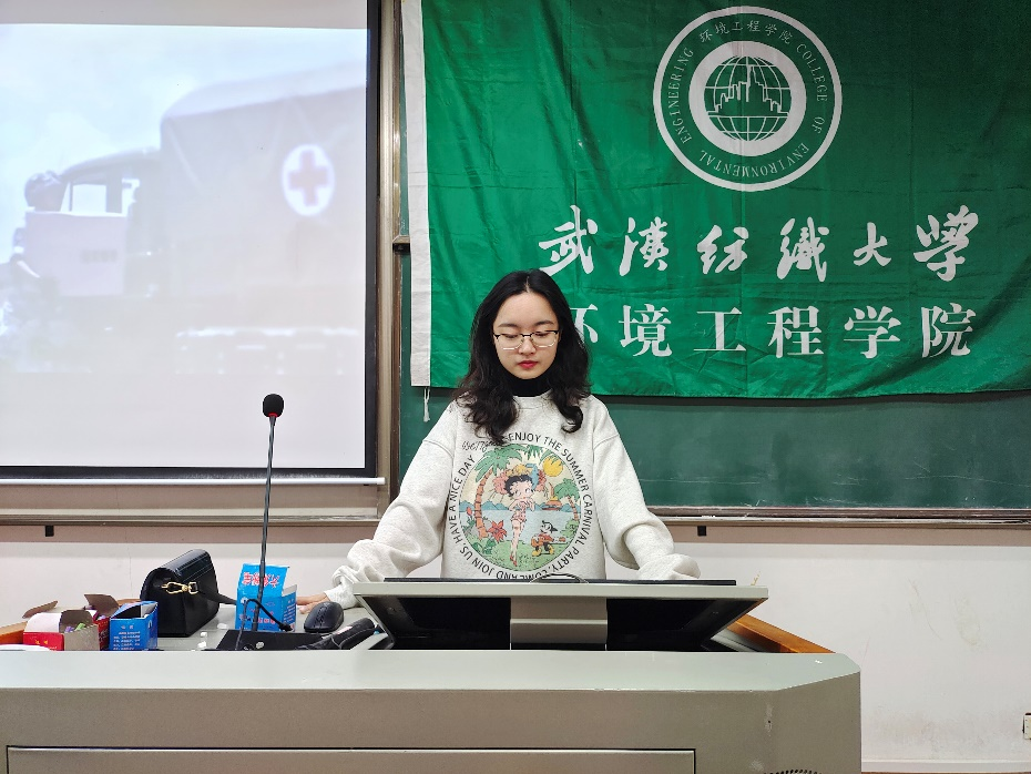 课程第二项,2019级梁露馨为大家详细讲述了公司里大家身边的先进典型;如,疫情期间18级张丹妮主动走在抗疫最前线,用自己的热血温暖着被疫情困扰的人;18级周帆主动请缨,作为应急民兵参加镇江江心洲抗洪救灾,不畏艰险,和抗击灾情的官兵一起,不眠不休,坚守救灾一线;值得一提的是21级新生贺美娇,暑假期间主动充当防洪宣传员,向群众义务普及防洪防汛知识。这些事例,充分体现了纺大校训中的“自强不息”精神,展示了英国365集团网站学子的青春风采。