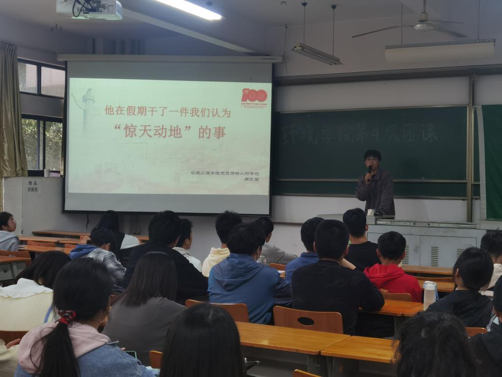 建环11901班的陈兢同学分享了全国“三下乡”先进个人周帆在抗洪一线的故事,用同学的视角讲述出环境学子的青年担当。