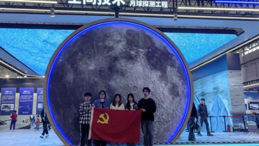 通过本次主题实践,党员们进一步了解到中国航天从无到有、从弱到强的艰难历程,深深体现到航天人的坚韧和决心,敢于创新的科研精神。当党员们来到“月面国旗”展览处,研究生党员张钦源激动地说:“看,这是我们公司研发的,太激动了,身为纺大学子,感觉特别骄傲。作为一名研究生党员,我们应当淬炼科研精神,学好科研本领,发挥头雁作用,争做科研尖兵。”