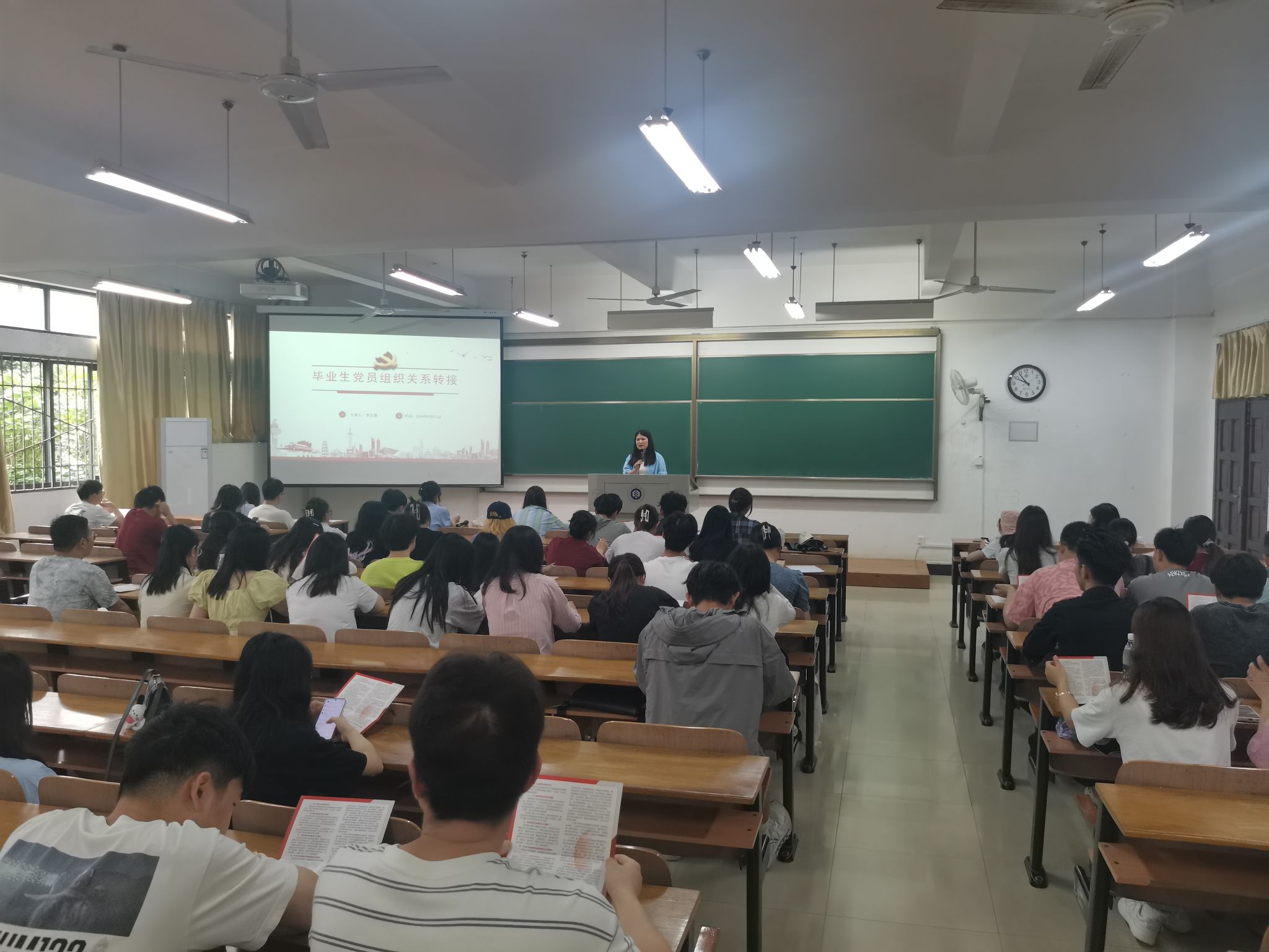 李文倩就毕业生党员组织关系转接相关事项进行了详细的说明和指导,并为每一位党员发放了党徽和组织关系转接卡。她强调组织关系转接的重要性和必要性,详细讲解转接的流程、注意事项以及可能遇到的问题,提醒毕业生党员在转接过程中的纪律要求,确保转接工作的顺利完成。