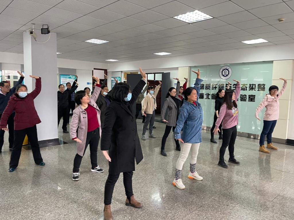 2021年4月1日,校体育部向公司工会全体职工推广八段锦健身操法,通过现场演示、分步教学、完整跟练的方式,为大家提供这套实用方便、行之有效的健身锻炼方案。本次活动的开展得益于校体育部叶东茂教授的亲身经历,因他在疫情期间锻炼八段锦体会到这一中华传统养生文化宝藏确实有强身健体、疏通筋骨之效,才有了号召全校学习八段锦的想法。本次活动也得到了全体职工的大力支持和积极响应,现场气氛浓厚而融洽,有职工反馈跟练两次便发热出汗的现象,大家纷纷称赞这次活动举办有意义。