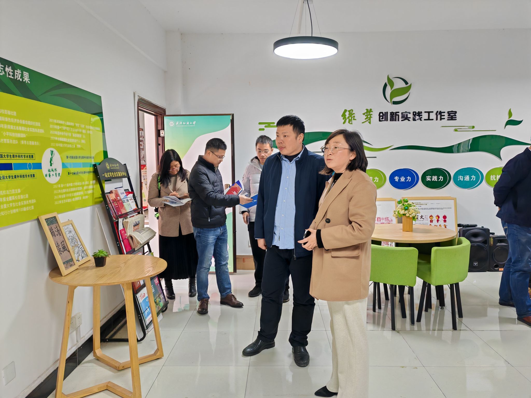 12月12日上午,广州大学员工处员工社区党委专职副书记刘军、员工社区公寓管理服务中心李爱凤等一行四人来“绿芽”创新实践工作室调研交流。