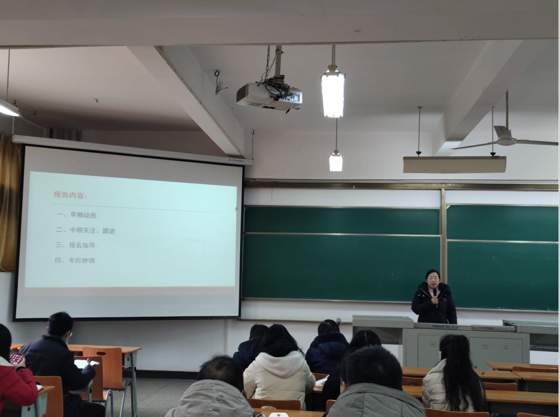 蔡亚君作为2022届优秀班主任代表,进行“考研包保经验”交流,她所带的班级在2022年考研成功率接近30%。她建议老师们抓住考研的四个“重要节点”。在早期,在班级进行不断动员、宣讲;在中期需要保持关注、持续跟进;在考前提供报考指导、专业课辅导;在考后积极提供调剂及复试建议。