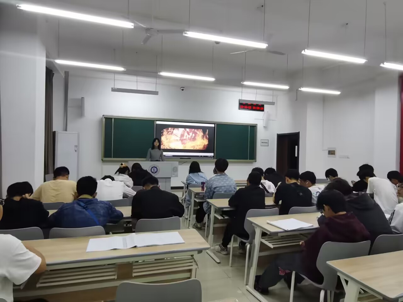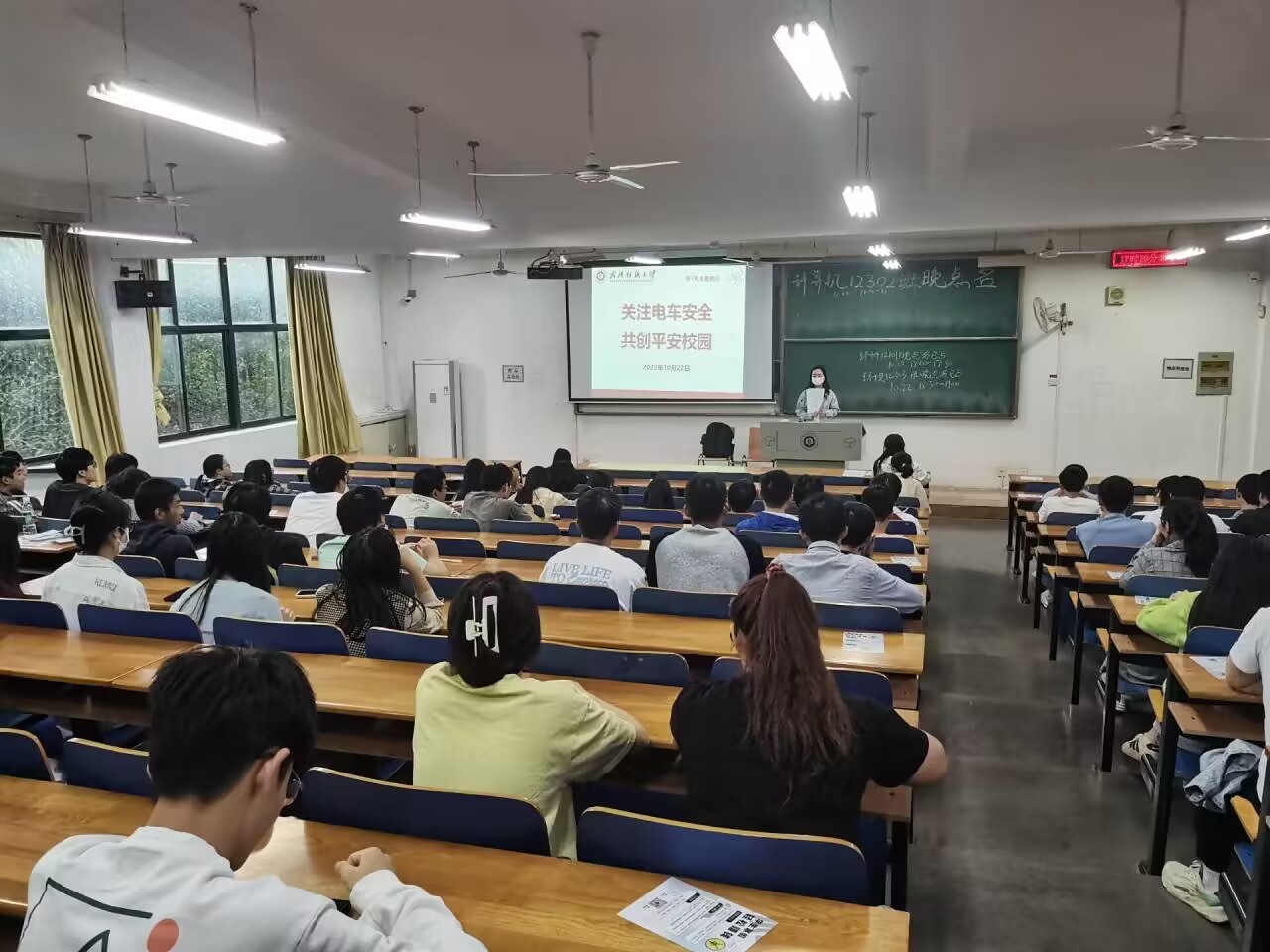 班会上还进行了校园安全警示教育,播放了常见校园安全案例警示片,重点强调了电动车使用安全和停放要求,希望大家要遵守交通规则,不超速、不闯红灯,保障自身和他人安全。