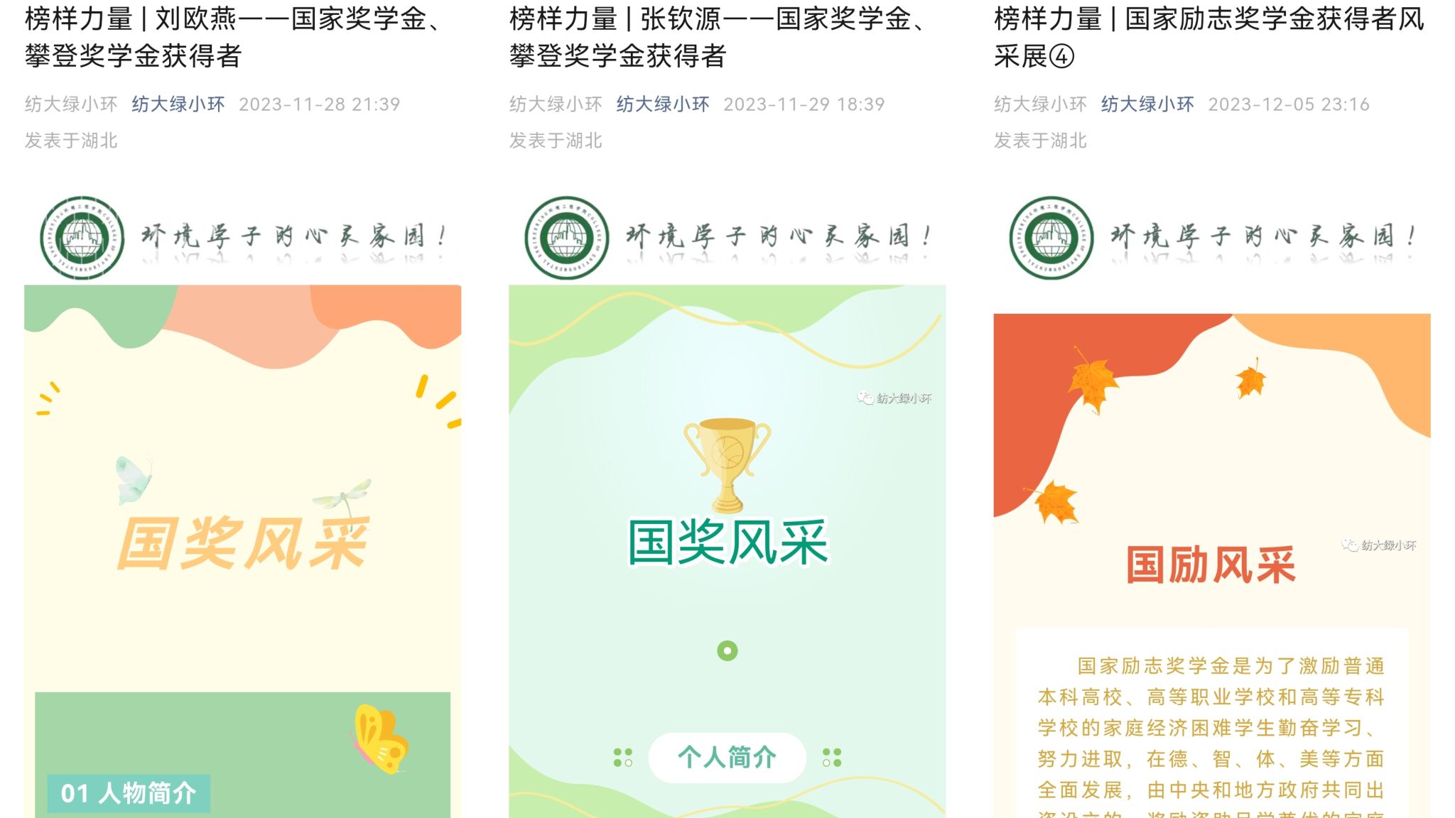 宣传优秀学子,发挥榜样力量。11月12日—12月,公司召开“乐于学习、勤于学习、善于学习”主题活动。通过主题班会展示、社区驿站巡讲等方式,展示了国家奖学金获得者的学习经历、科研经历、社团活动、学习方法和心得体会等内容。这些身边的案例,激励着同学们要树立明确的目标,要有坚定的信念,要有持之以恒的毅力,才能在学习的道路上走得更远。同时,公司微信公众号推送国家奖学金、国家励志奖学金获得者优秀事迹,以身边的榜样激发员工活力,引导同学们刻苦钻研。
