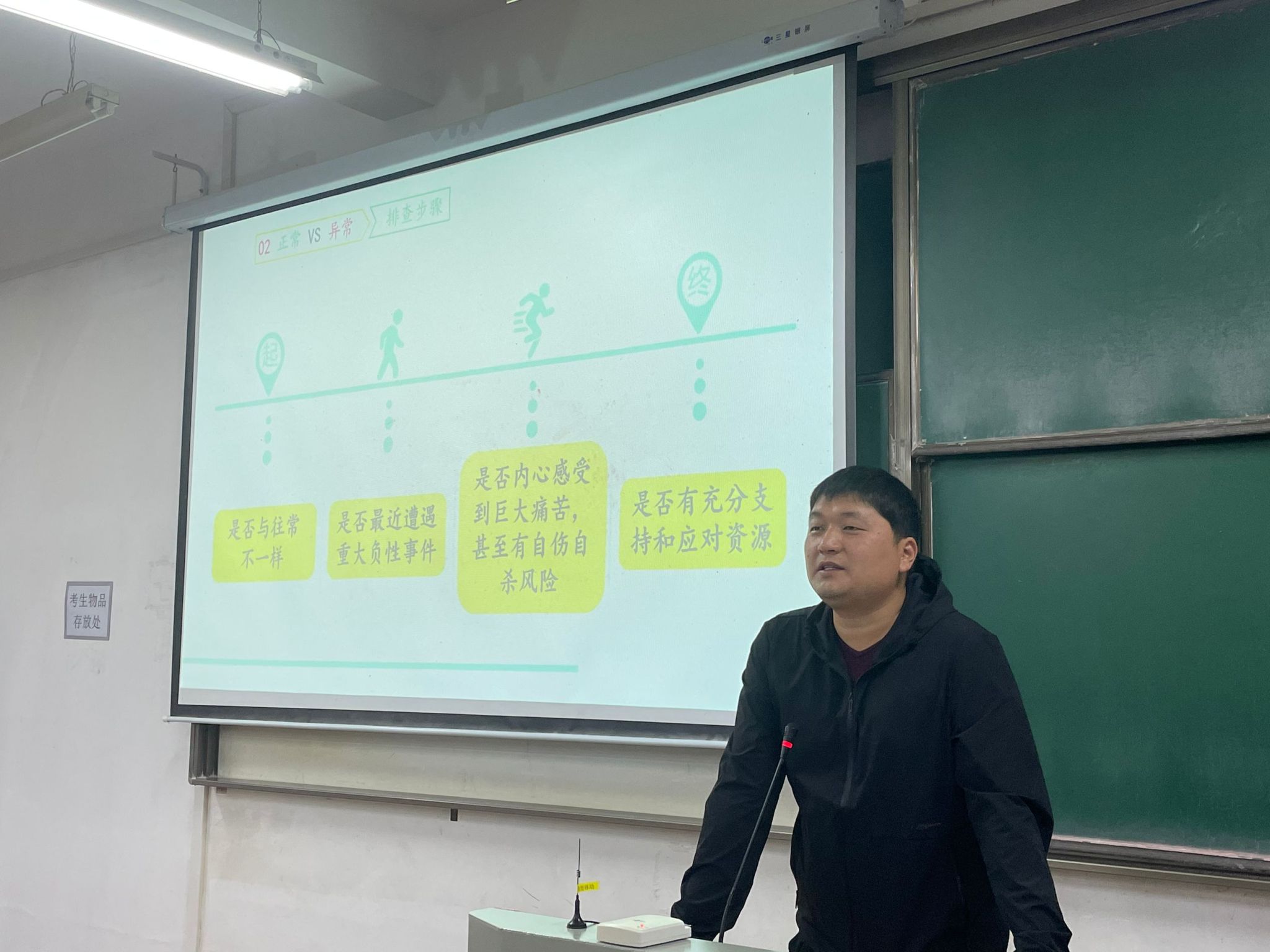 张万里以《如何当好知心人、联络员》为题,从常见异常心理与行为类别为切入口,围绕员工人际关系、沟通技巧、心理危机干预策略、心理评估方法及如何帮扶等内容进行讲解。张老师为员工骨干们详细介绍了如何与其他同学保持良好的沟通,同时也对如何从学业、生活、心理上帮扶同学给出专业指导,帮助同学们掌握如何做好朋辈“知心人”。