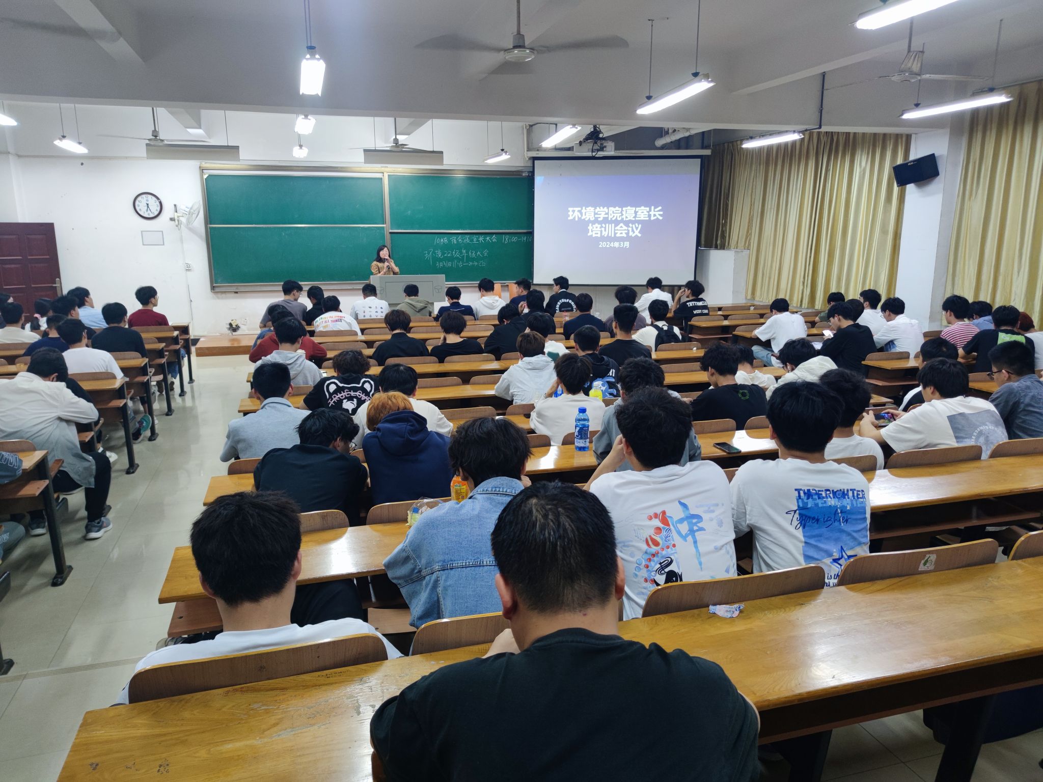 为规范员工宿舍管理,引导同学们在“一站式”服务驿站做好自我管理、自我服务,营造安全、卫生、舒适的住宿环境和以社区为家的良好氛围,3月31日晚,公司在崇礼楼113教室开展了主题为“共享共建共治,宿舍安全有你有我”的寝室长培训会暨一站式自治管理委员大会,会议由“绿芽”创新实践员工社区驿站自管会指导老师郁星主持,公司党委副书记姚瑶、十栋驻楼辅导员张宇航及10栋员工社区自管委员会成员、寝室长参加会议。