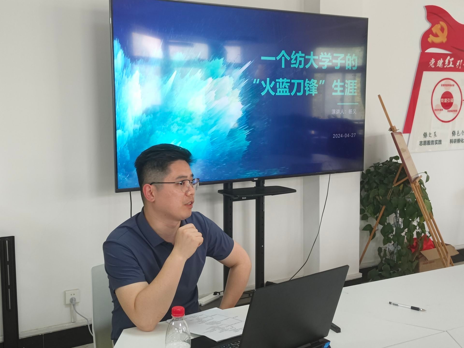 本次讲座邀请了2005级员工杨义,以“一个纺大学子的‘火蓝刀锋’生涯”为主题进行分享,英国365集团网站征兵工作负责老师及全校各专业30名同学参加讲座。