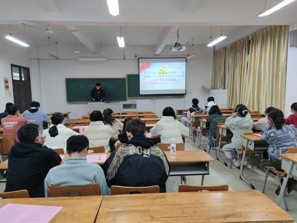 主题团日围绕着学习共青团十八届五中全会精神、全国脱贫攻坚总结表彰大会精神、习近平总书记会见探月工程嫦娥五号任务参研参试人员代表时的重要讲话精神等开展,让同学们深刻了解到“党旗所指就是团旗所向”的含义,让同学们深刻了解到人民至上、以人为本、党民同心、众志成城的脱贫攻坚精神让同学们深刻了解到只有科技工作者的无私奉献,才有强大的祖国和人民幸福生活,让中华民族以更加昂扬的姿态屹立于世界民族之林