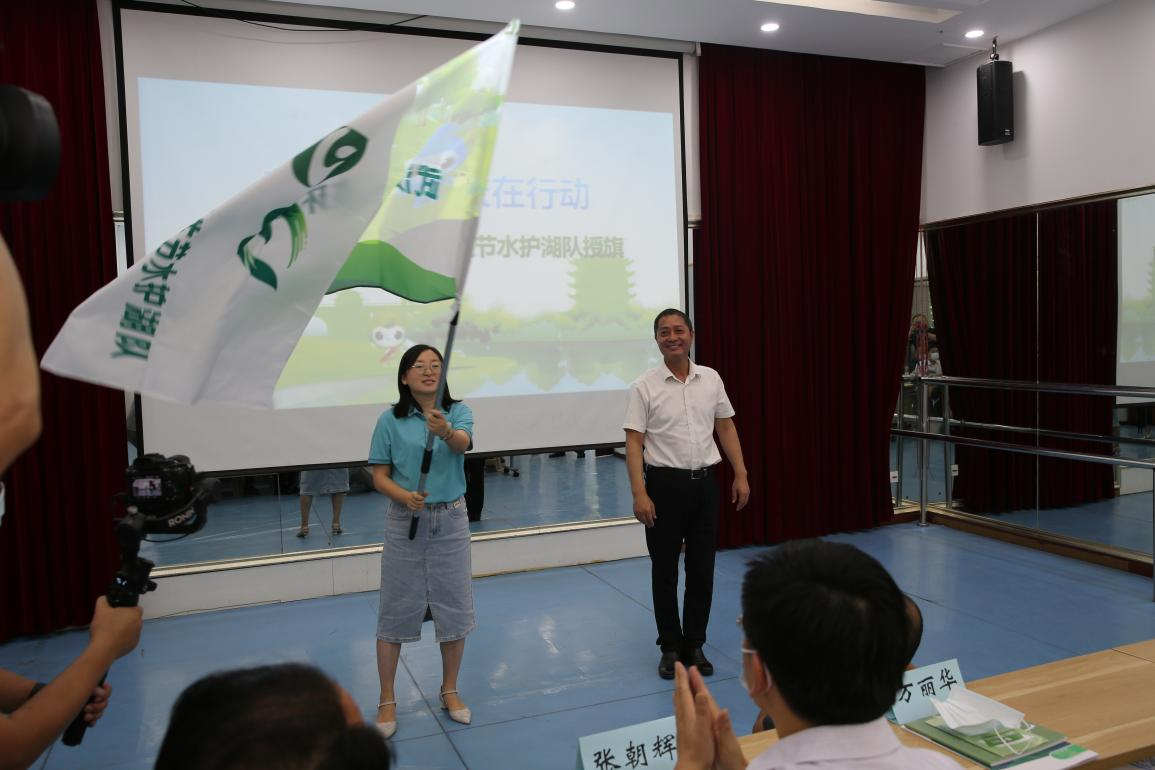 “一水多用真聪明,节约用水好风尚......”环保志愿者领唱的一首《节水歌》以优美的歌词礼赞绿色美好未来,伴随着节奏轻快的歌声,“全民参与节水护湖”主题活动正式开始。