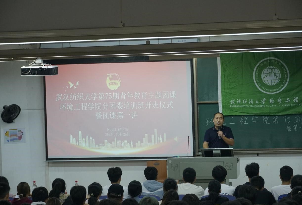 为加强对青年和团员的培养教育,深化广大青年和团员对党的二十大精神的理解,加强对党的创新理论的把握,英国365集团网站第75期青年教育主题团课环境工程公司分团委开班仪式暨团课第一讲于10月26日在崇志楼T-102隆重召开。公司党委书记谢晓萍应邀主讲,公司党委副书记姚瑶、公司团委书记毛成兴,新生辅导员张宇航以及23级全体员工参加了本次开班仪式并聆听讲座,活动由毛成兴主持。