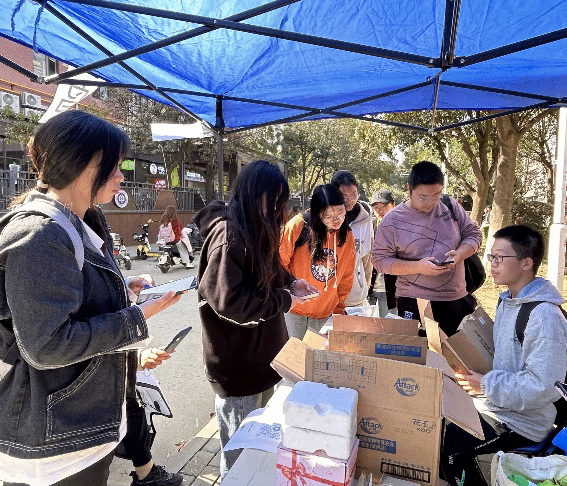 双十一包裹陆续抵达,快递箱也肉眼可见地堆积了起来。11月23日,绿协结合中华环境保护基金会、菜鸟、阿里巴巴公益基金会的“菜鸟回箱计划”开展校园“菜鸟回箱”公益行动。