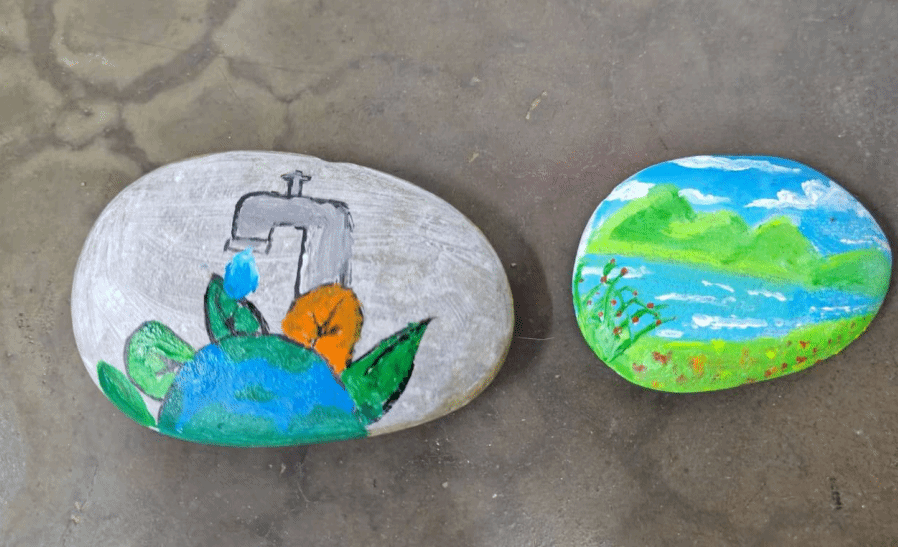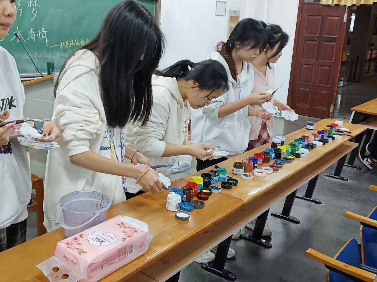 绿色环保协会、石头画协会结合社团特色开展节水手工绘画活动,大家用石头、餐盘、瓶盖等作为载体绘制了一幅幅精美的画作,现场同学们热情高涨,既生动有趣,又能体会到水资源的珍贵和环境保护的重要性。