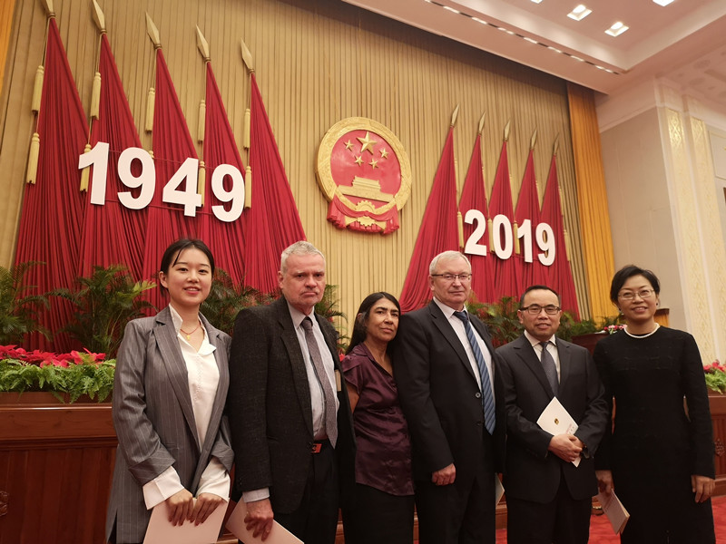 9月27日晚,庆祝中华人民共和国成立70周年外国专家招待会在人民大会堂隆重举行。中共中央政治局常委、国务院副总理韩正出席并致辞。公司外国专家***、古丽耶夫·亚里山大、雷格德诺夫•布利亚尔三位教授应邀出席此次招待会。